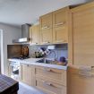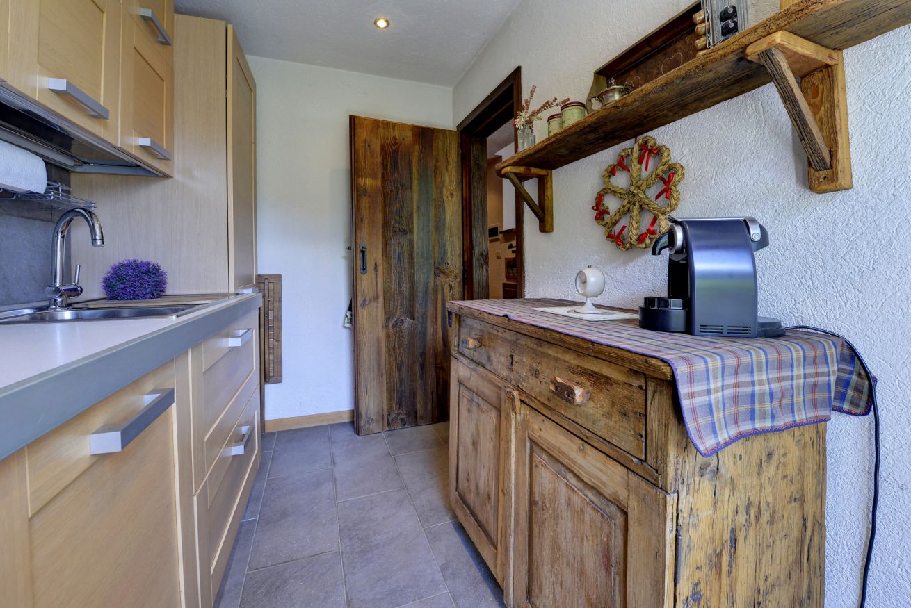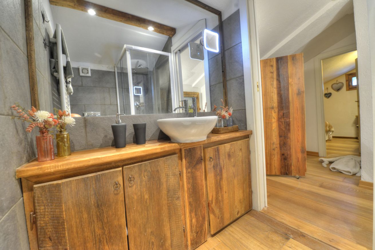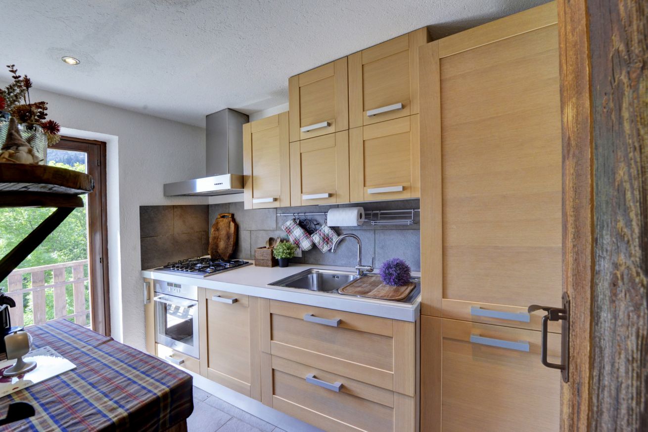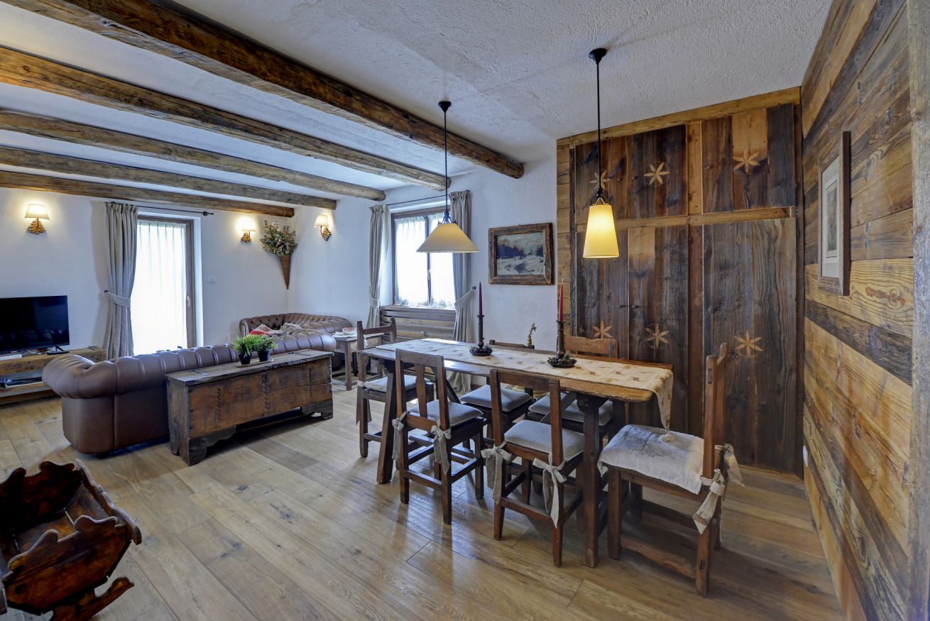 La cucina attrezzatissima, cuore pulsante della casa, non è da meno. Da qui, un'altra porta finestra si apre su un ampio balcone orientato a nord-ovest, offrendo una vista mozzafiato sul fiero Monte Crammont e su un tratto suggestivo della leggendaria catena del Monte Bianco. Immagina di sorseggiare il tuo caffè del mattino o di goderti un aperitivo serale con questo scenario alpino a fare da cornice.