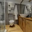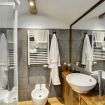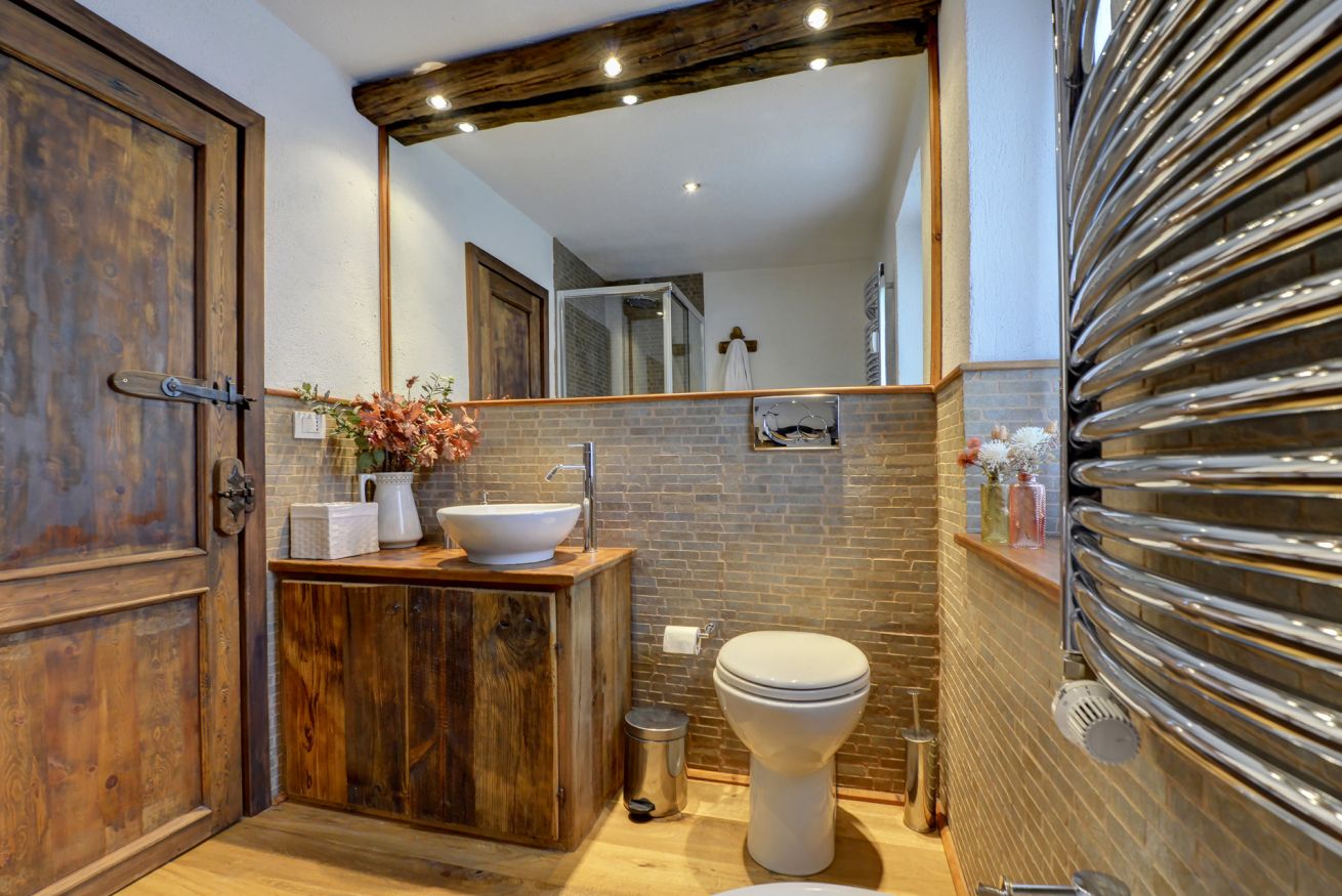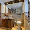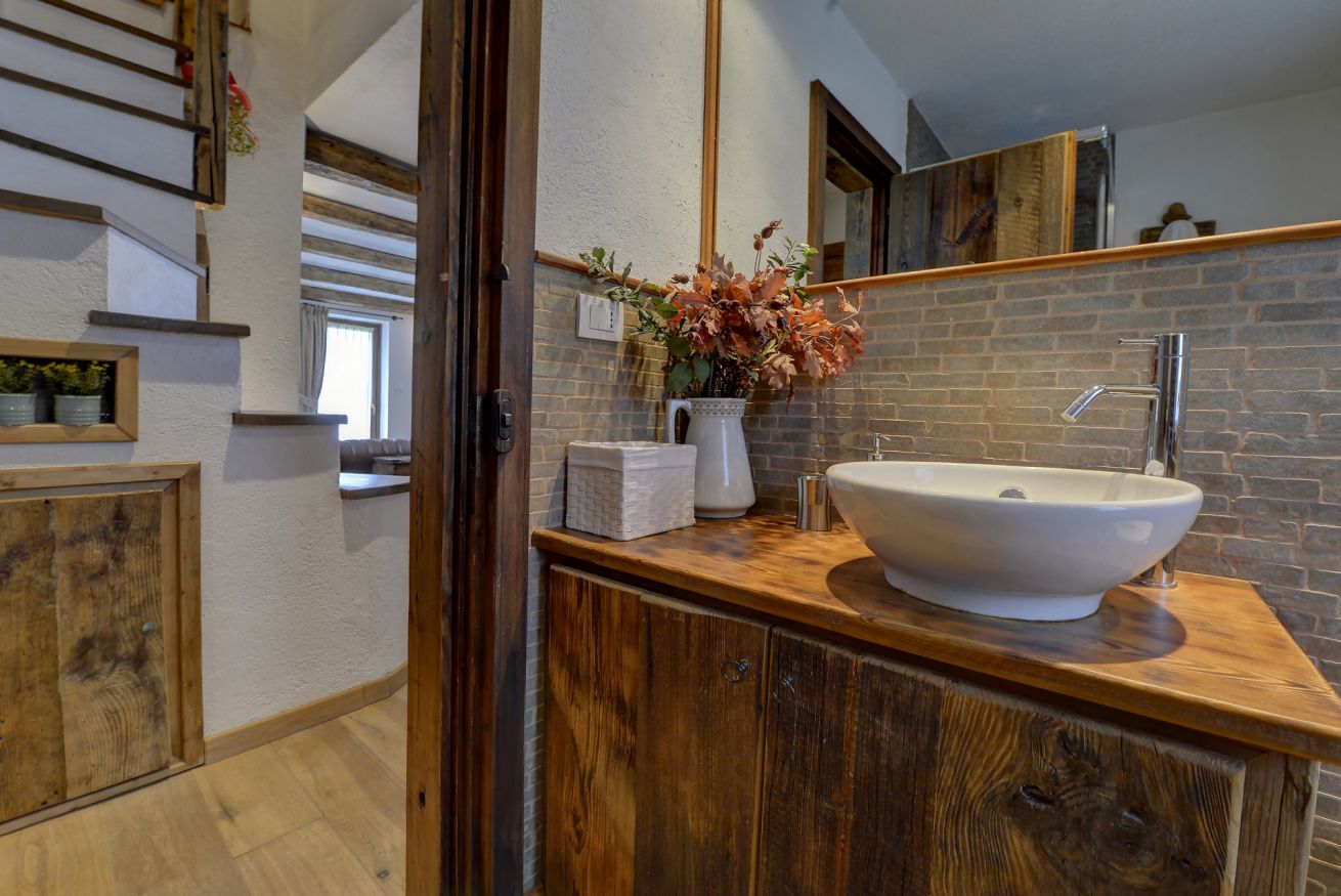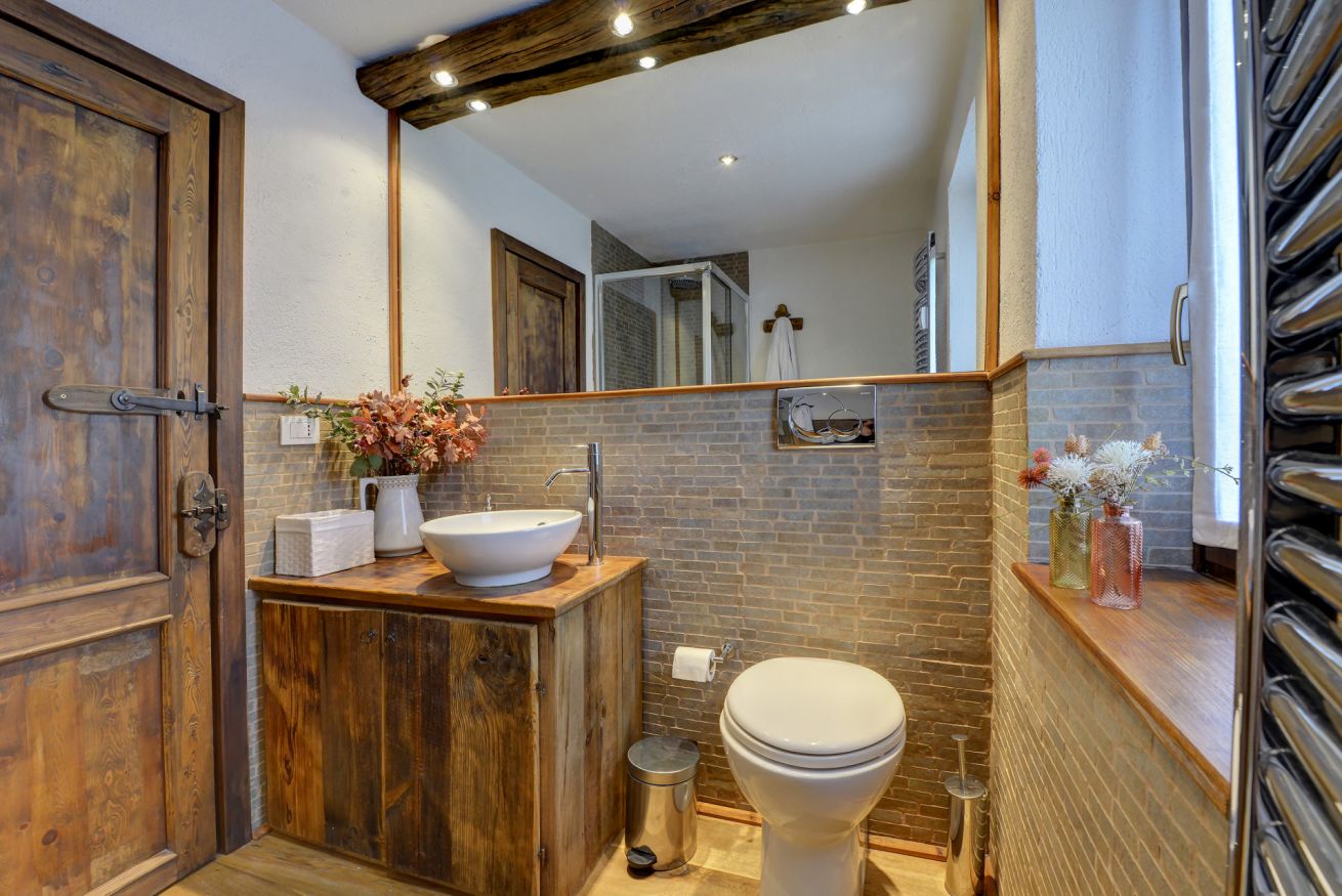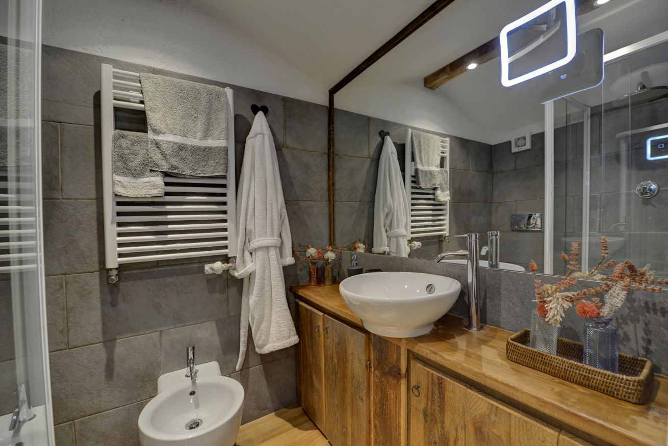 Un magnifico ed elegante bagno completa con stile e funzionalità il piano inferiore, anticipando la raffinatezza che ti attende al piano superiore.
