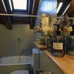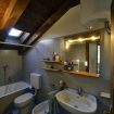 Il bagno è una piccola oasi di benessere, pensata per il riposo: la vasca-doccia invita a rilassarsi dopo una giornata tra sentieri e piste, tra l’aroma del tetto in legno e il calore di un ambiente ovattato.